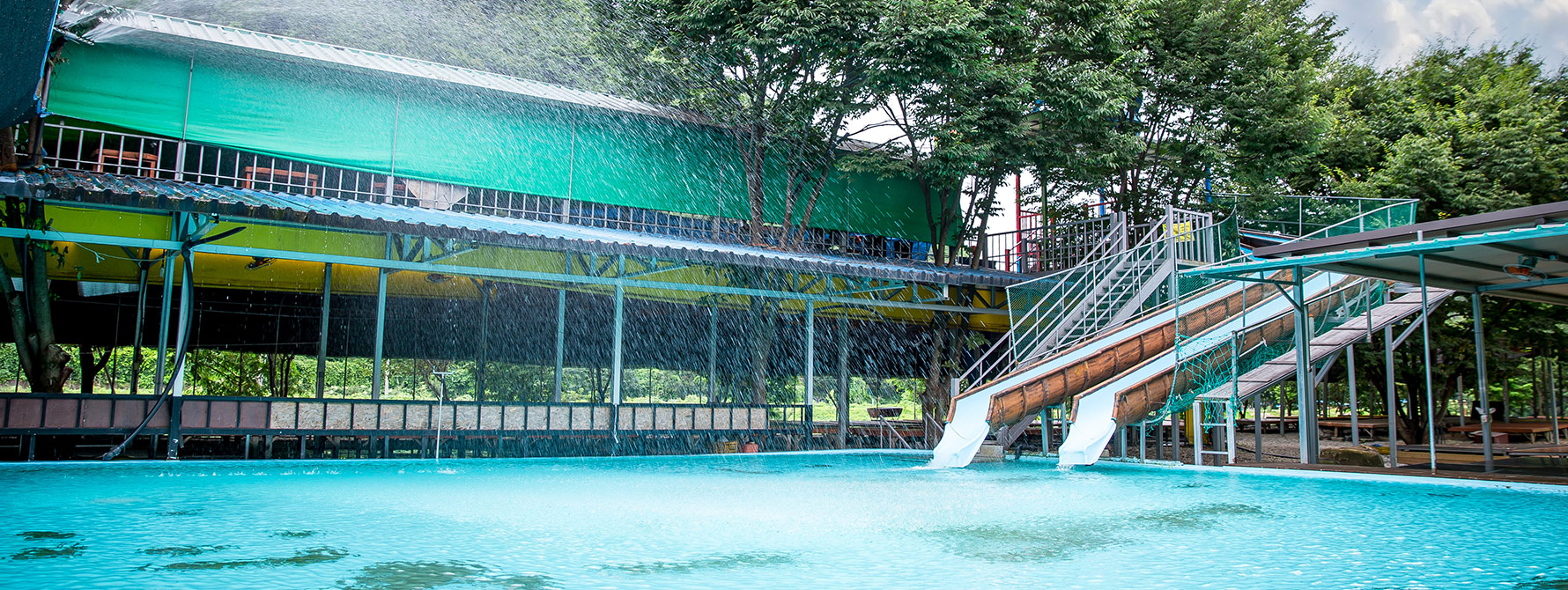 카라반 뒤로는 넓고 깨끗한 수영장도 있어 최고의 휴양을 기대하셔도 좋습니다.